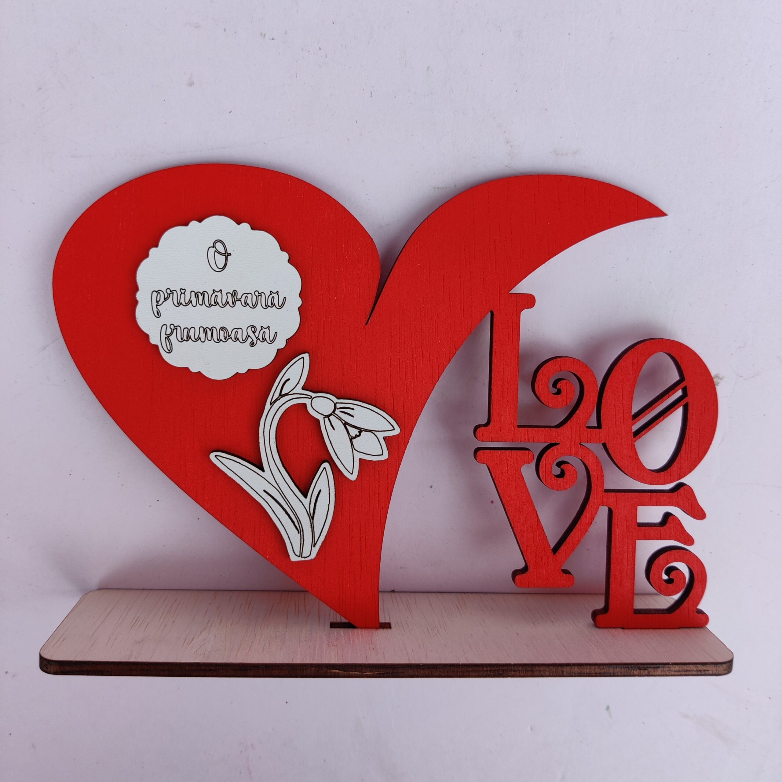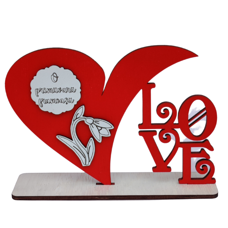 Decoratiune de tip Inima cu suport cu mesajul LOVE si urarea "O primavara frumoasa". Aceasta decoratiune este un cadou ideal pentru mama, bunica, colega, prietena, etc.