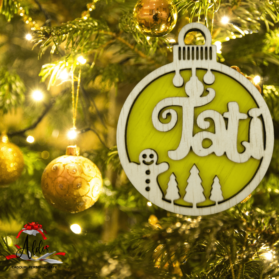 Glob personalizat cu numele dorit. Contine elemente decorative cum ar fi: globuri, om turta dulce, braduleti. Alcatuit din 1 sau 2 straturi.