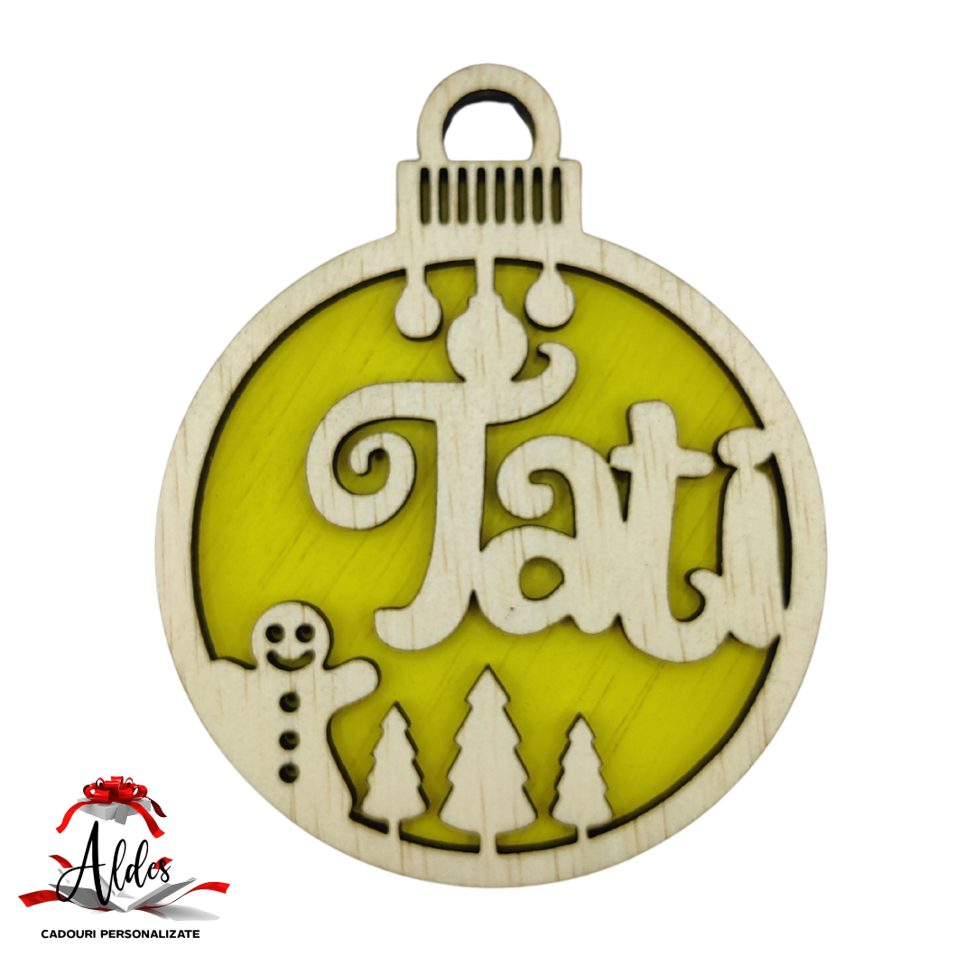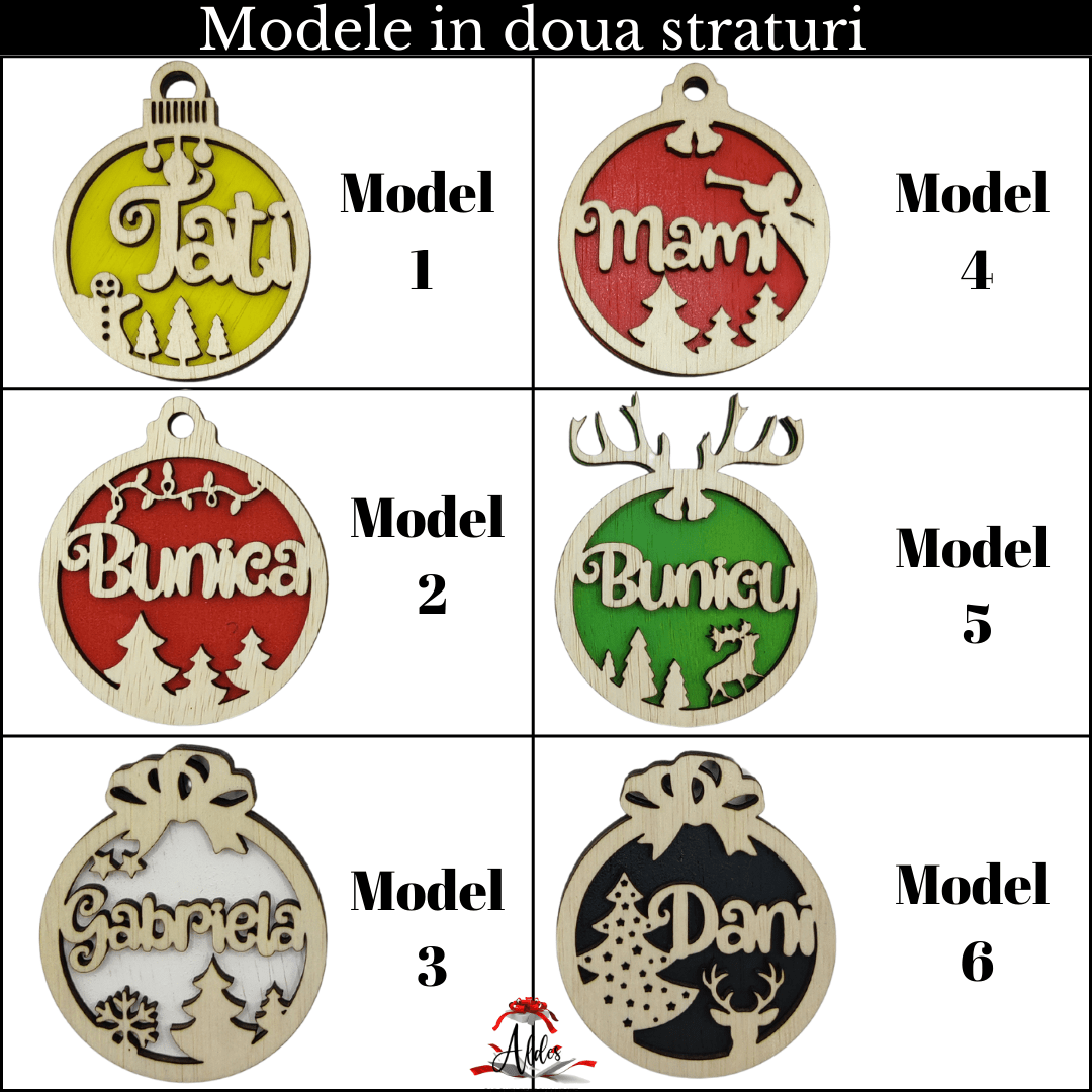 Glob dublu personalizat cu nume, din lemn, model 3
