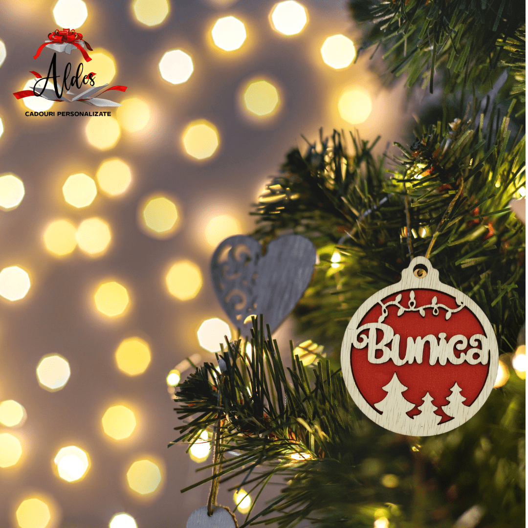 Set 6 globuri personalizate cu nume, din lemn Interval de prețuri: 59.99 lei până la 89.99 leibucată