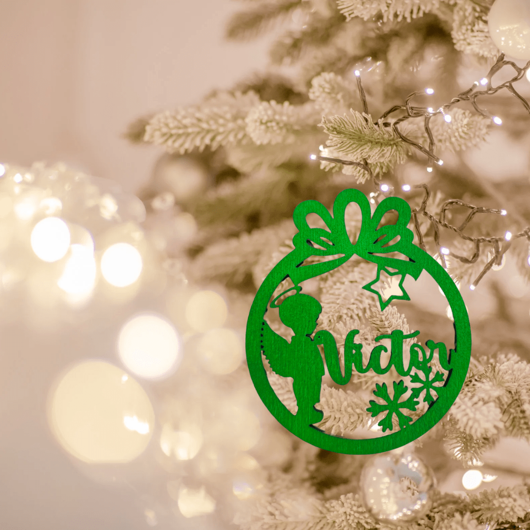 Set 12 globuri personalizate cu nume, din lemn