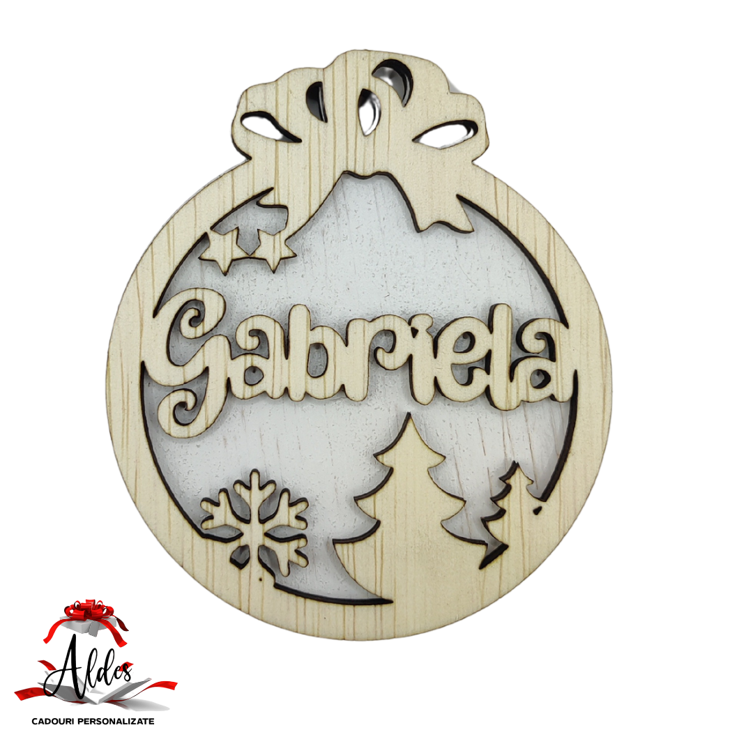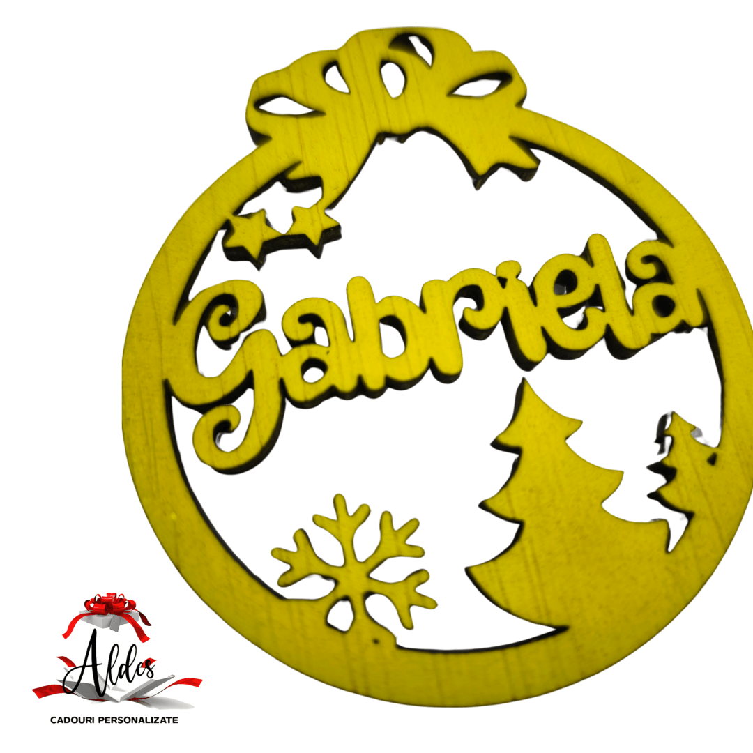 Glob personalizat cu numele dorit. Este un glob din lemn, cu fontita.