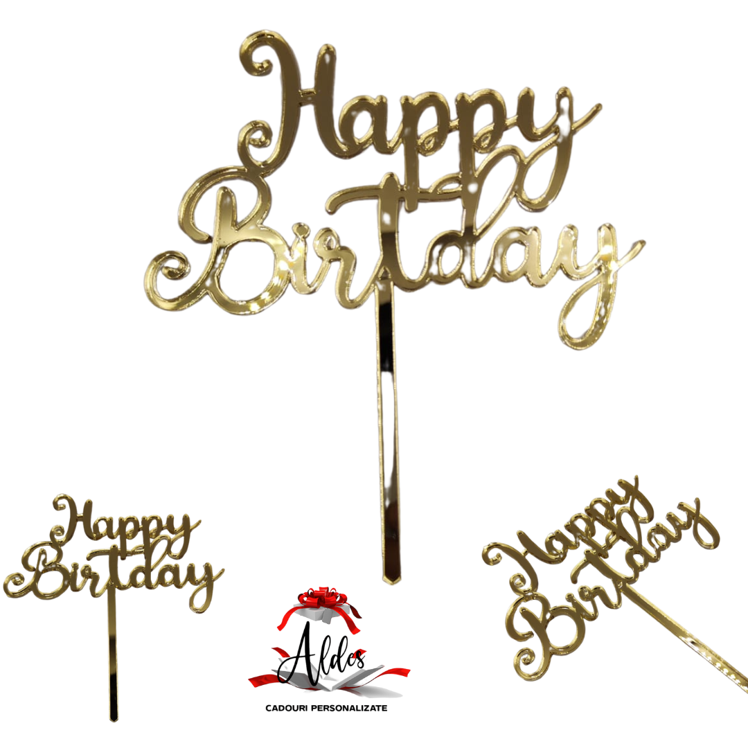 Toppere tip Happy Birthday, pentru decorarea si personalizarea torturilor, a buchetelor de flori sau orice alt articol care se doreste a fi personalizat.