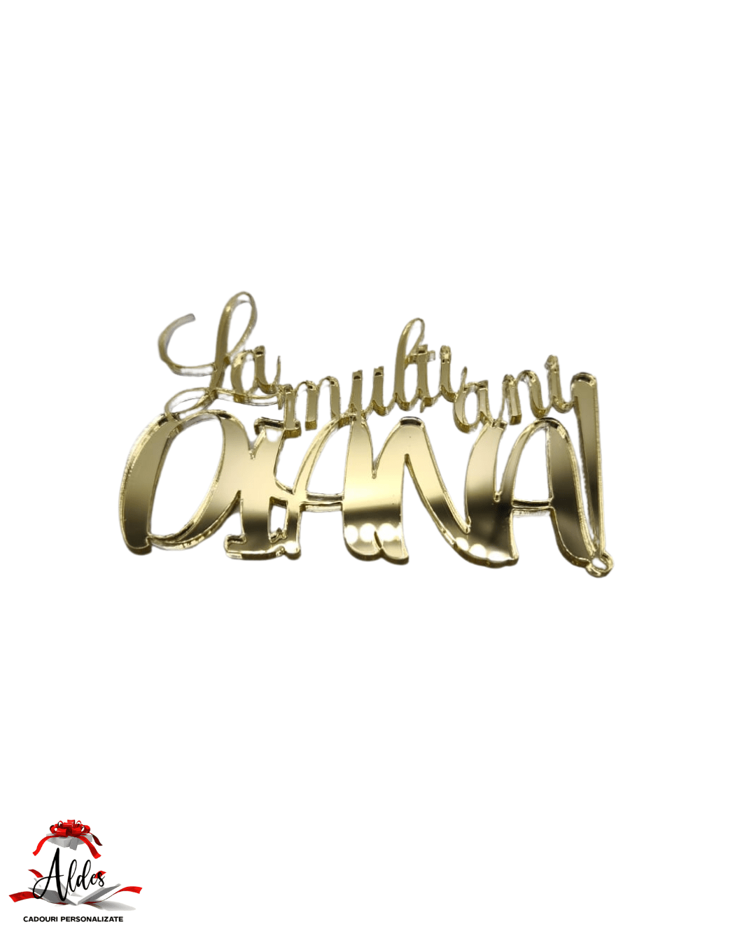 Topper „La multi ani cu nume personalizat”, fara suport, din plexiglas (acril) oglinda
