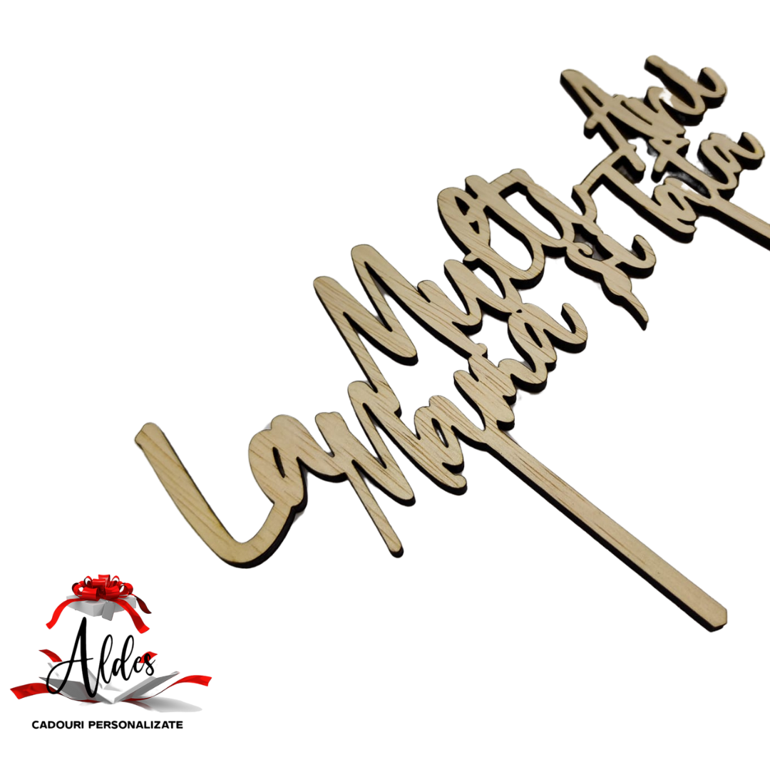 Topper / props-uri tip „La multi ani mama si tata”, scris cu litere de mana, pentru decorare torturi, buchete de flori, etc.