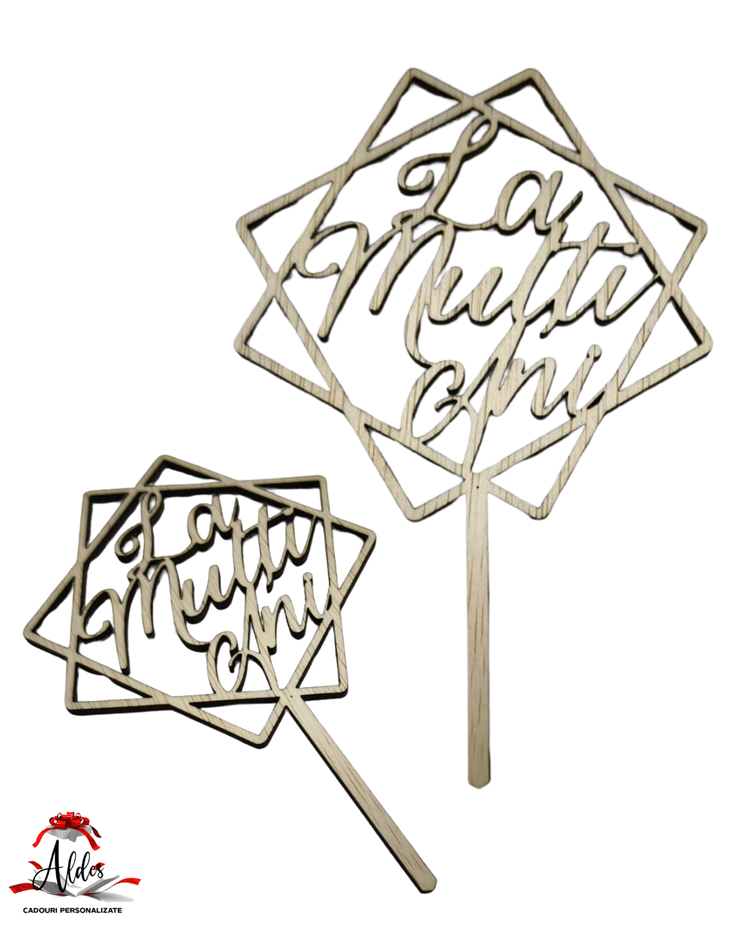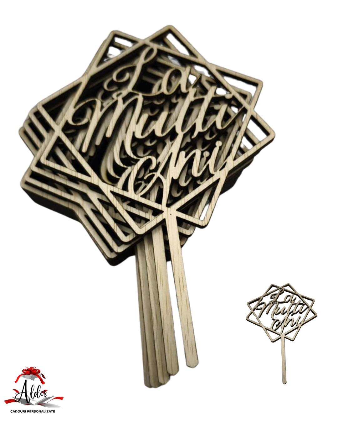 Topper "La multi ani", cu suport, din lemn de plop Interval de prețuri: 9.99 lei până la 28.99 leibucată