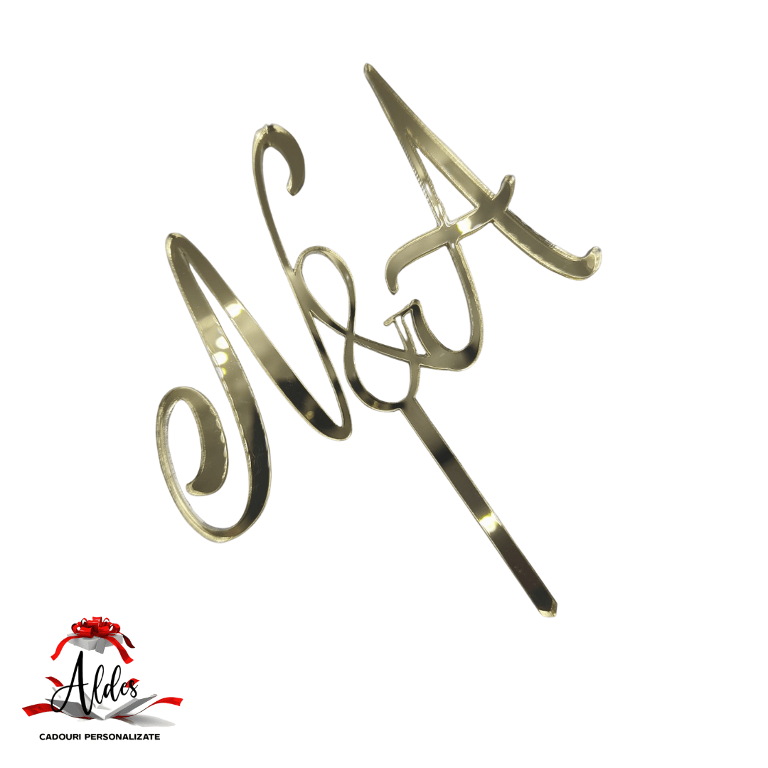 Topper / propsuri tip litere initiale, scris cu litere caligrafice, legate cu semnul „&”, pentru decorare torturi, buchete de flori, etc.
