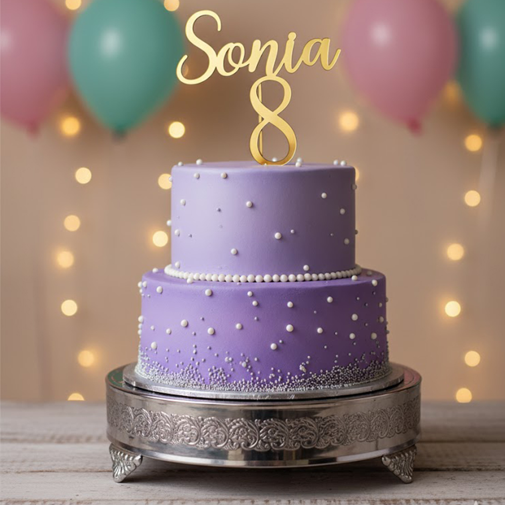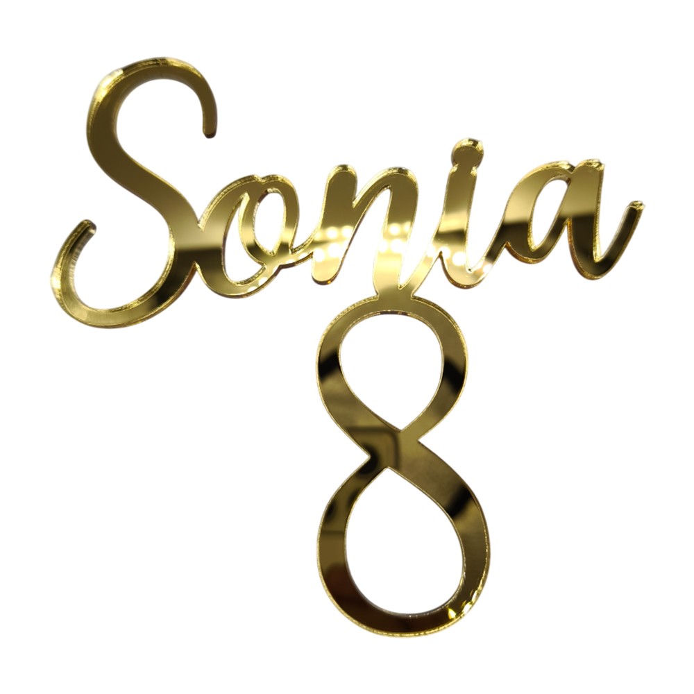Topper „Nume caligrafic+Vârstă”, fără suport, din plexiglas (acril) oglindă colorată