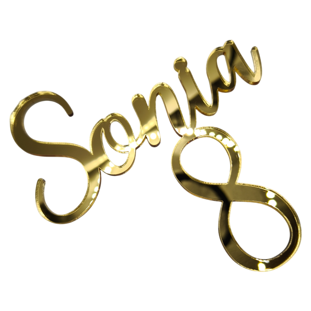 Topper "Nume caligrafic", fara suport, din plexiglas (acril) oglinda colorata