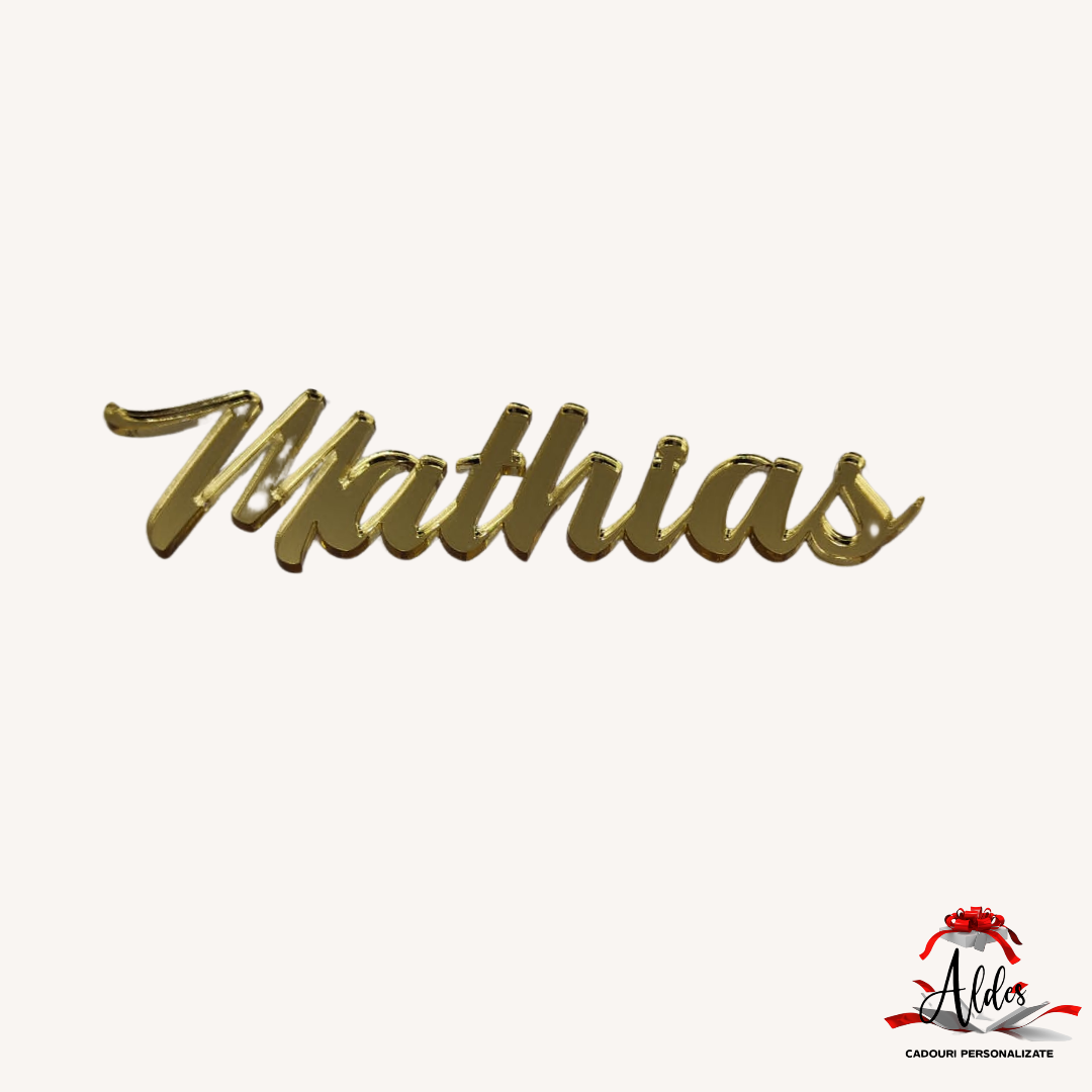 Topper „Nume caligrafic”, fara suport, din plexiglas (acril) oglinda