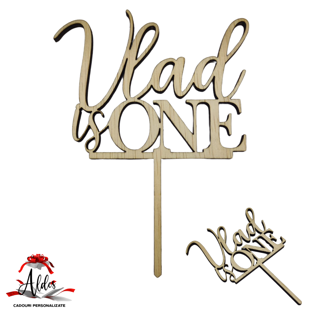 Topper personalizat tip nume si varsta, cu suport, din lemn de albasia