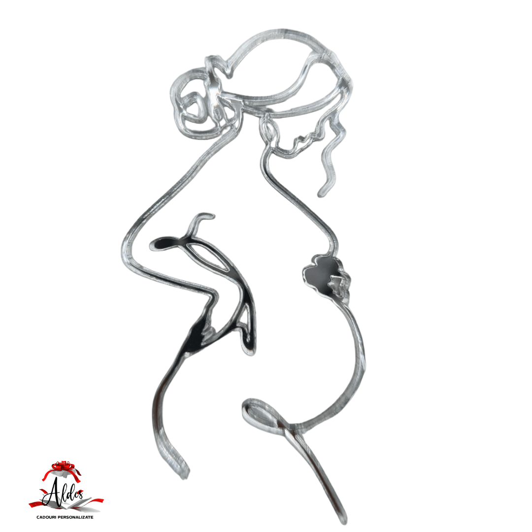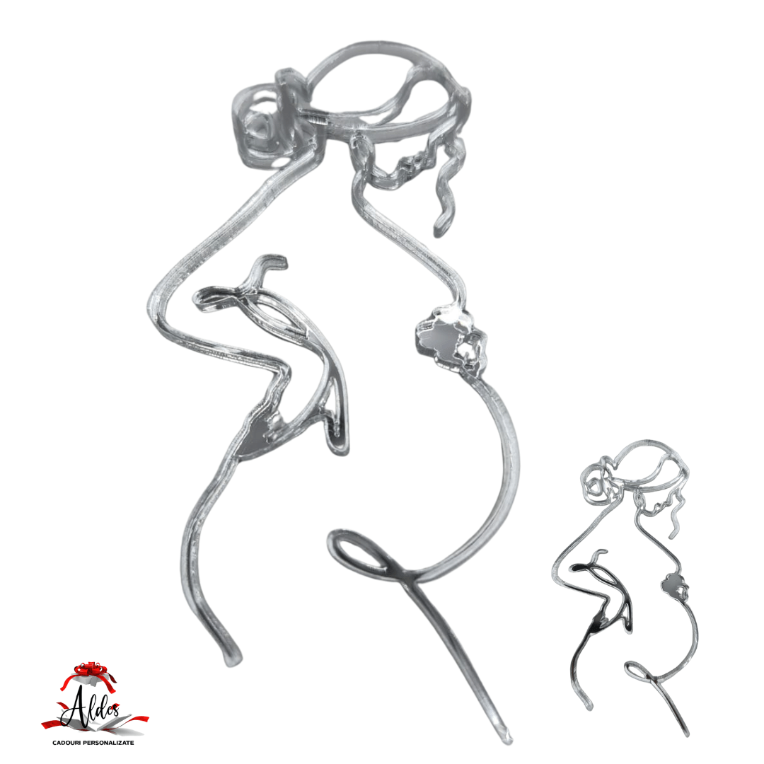 Topper / props-uri tip siluetă femeie gravidă, pentru decorare torturi, buchete de flori, etc. Realizat din oglindă aurie sau argintie.
