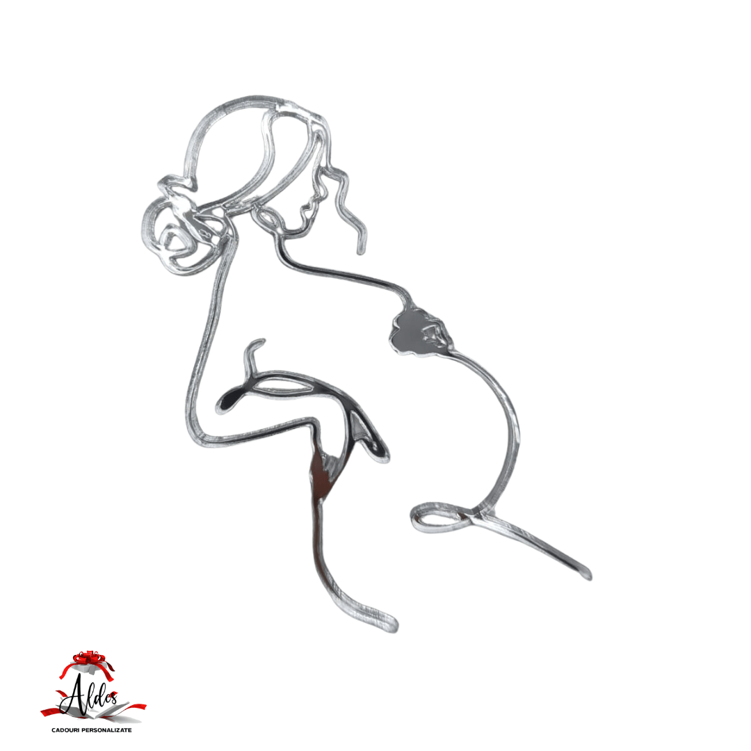 Topper siluetă femeie gravidă, fără suport, din plexiglas (acril) oglindă