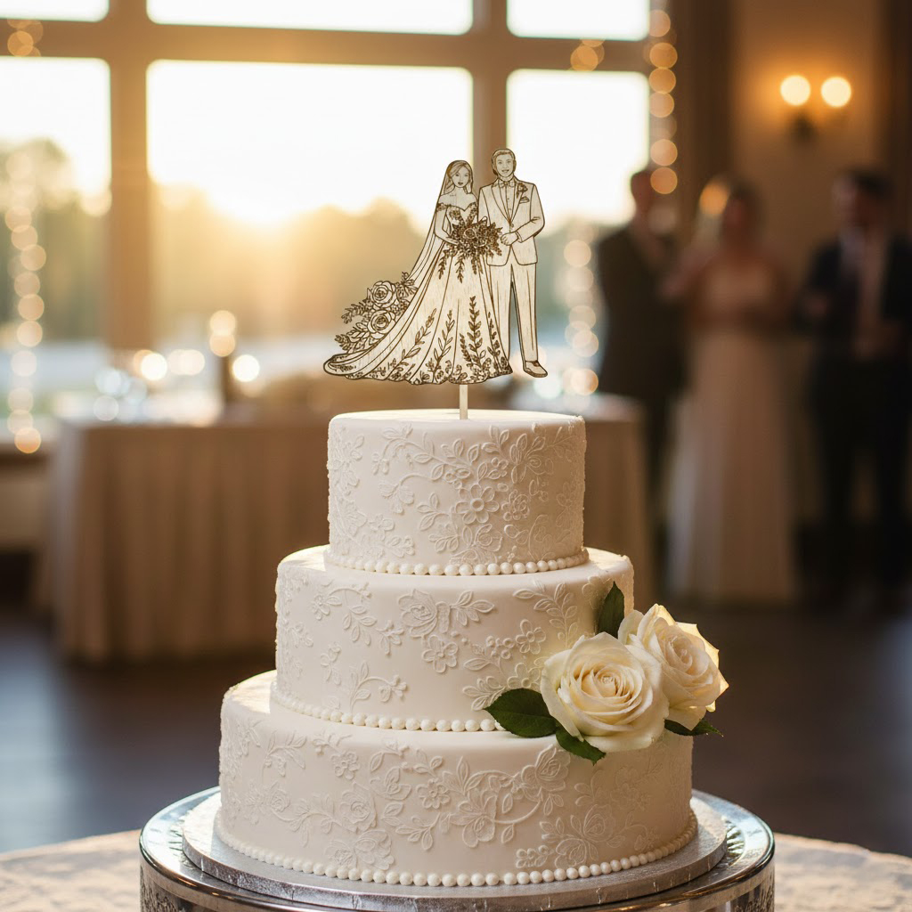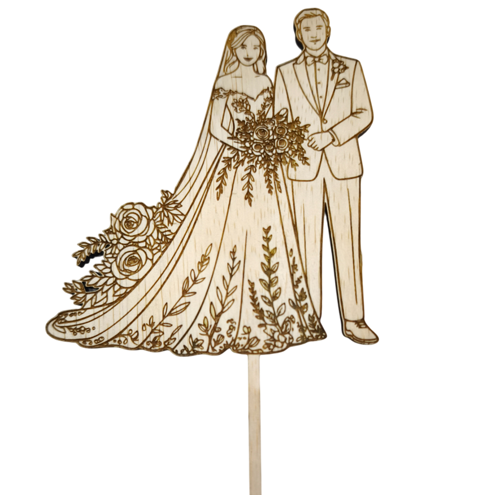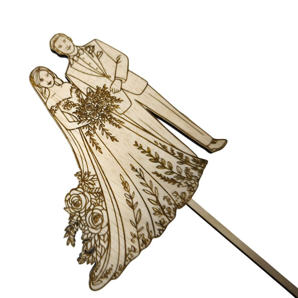 Topper cu gravura in forma de mire si mireasa, pentru decorarea si personalizarea torturilor, a buchetelor de flori sau orice alt articol care se doreste a fi personalizat.