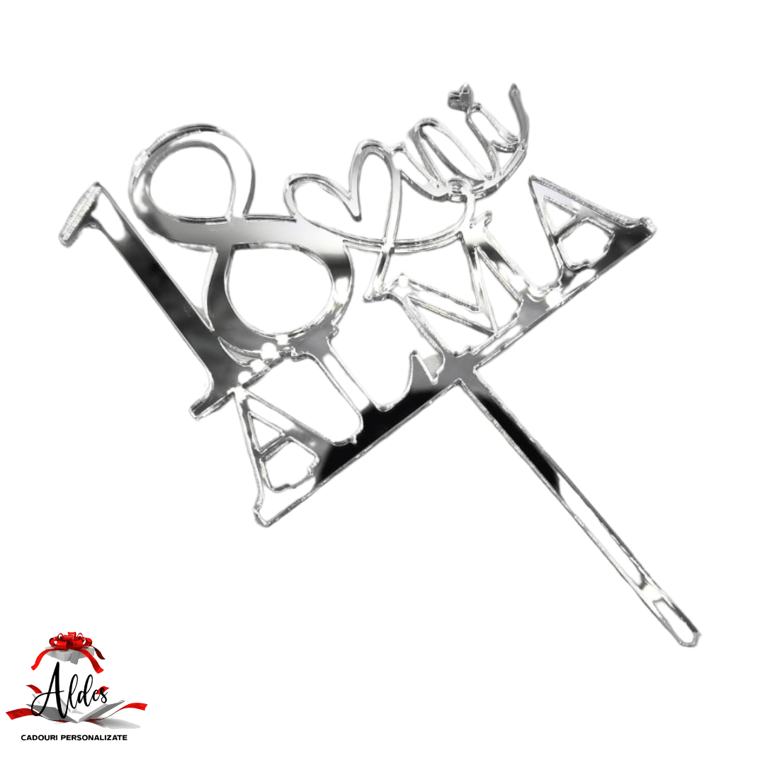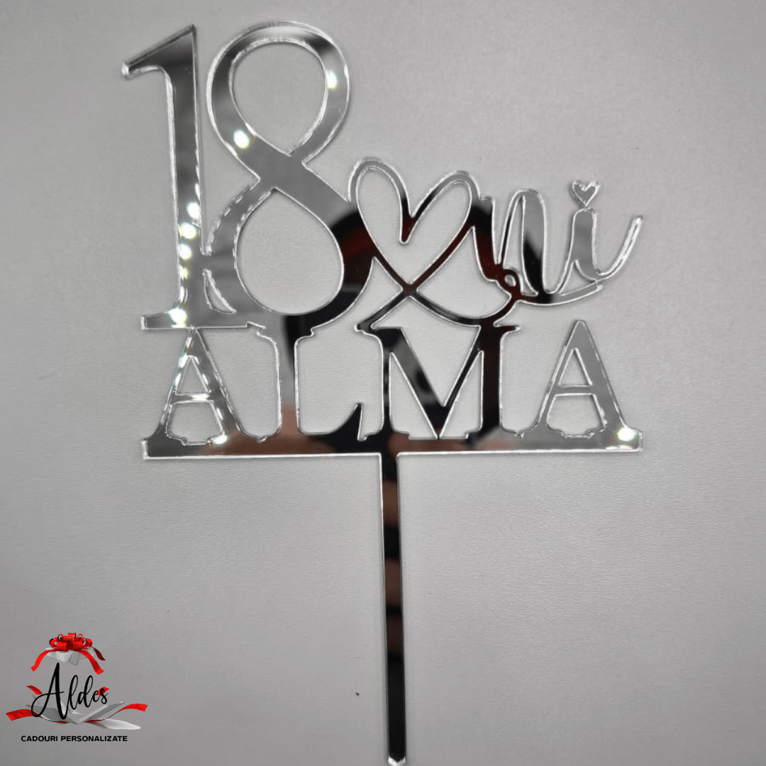 Topper tip „numar si nume personalizat”, cu suport, din plexiglas (acril) oglinda